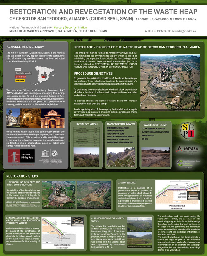 El Centro Tecnológico Nacional de Descontaminación del Mercurio ha participado con la presentación del poster Restoration and revegetation of the waste heap of Cerco San Teodoro, Almadén (Ciudad Real, Spain).